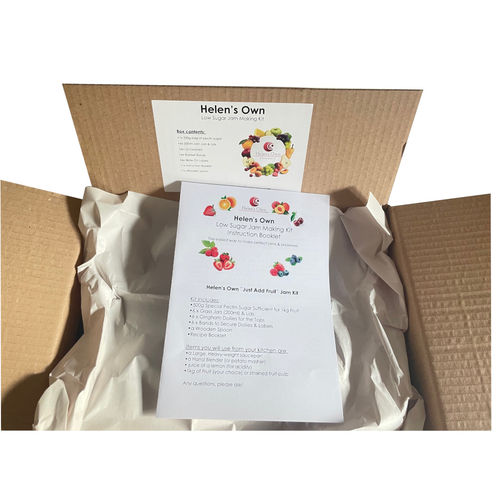 This kit uses special pectin sugar allowing you to make jam with only half the amount of sugar!